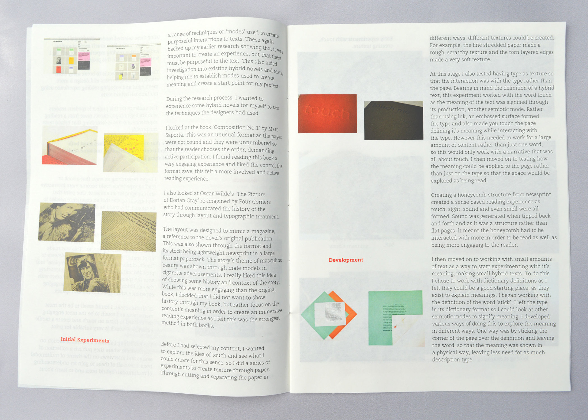 This small publication was made up of photographs of my experiments along the way on this project & a written 'diary' of my thoughts & explanations of what I was doing & why I'd done it.